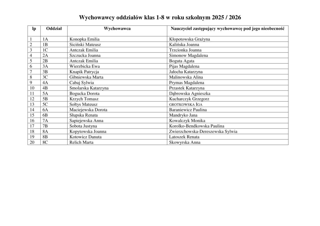 Wychowawcy klas 2025/26